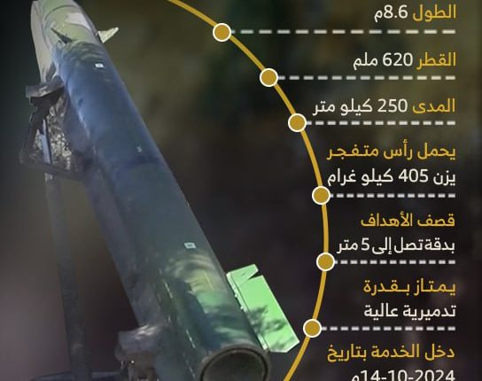 انفوجرافيك.. مواصفات صاروخ قادر2 البالستي انفوجرافيك.. مواصفات صاروخ قادر2 البالستي Last updated أكتوبر 16, 2024 Share Share