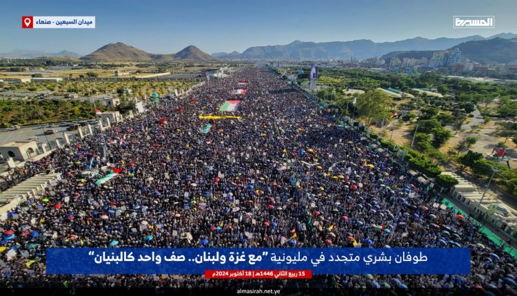 شاهد| استمراراً في التصدر لكل العالم وثباتاً على الموقف الذي لا يتزحزح… حشود مليونية في ميدان السبعين بالعاصمة صنعاء في مسيرة “مع غزة ولبنان.. صف واحد كالبنيان” 15-04-1446هـ | 18-10-2024م