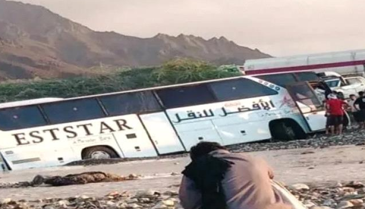 وأفاد شهود عيان أن الباص جرفته السيول في وادي منطقة حصيصة، بعد أن توقف بشكل مفاجئ وسطها. وأكدوا أنه تم إنقاذ الركاب بأمان ونقلهم إلى باص آخر لاستكمال رحلتهم.