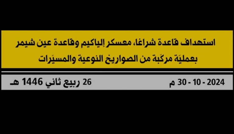 شاهد| استهداف المقاومة اللبنانية قاعدة شراغا ومعسكر إلياكيم بصواريخ ومسيّرات انقضاضية