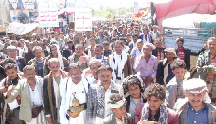 إلى ذلك شهدت مديريات المربع الشمالي “يريم، السدة، النادرة، والرضمة” عشر مسيرات حاشدة، طالب فيها المشاركون، بضرورة اتخاذ مجلس الأمن موقفاً حازماً إزاء جرائم الكيان الصهيوني في المنطقة.