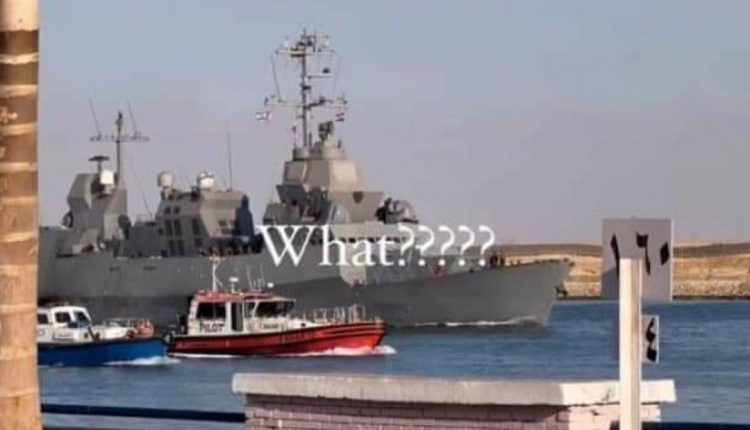 تداول ناشطون مصريون على مواقع التواصل الاجتماعي فيديو يظهر مرور فرقاطة “إسرائيلية” عبر قناة السويس ترفع العلم الصهيوني والمصري.