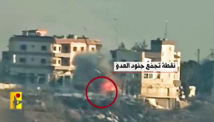 بث حزب الله مشاهد نوعية لعملية استهداف تجمعا لعدد من جنود العدو الصهيوني بين بلدتي “كفركلا ودير ميماس” في جنوب لبنان.