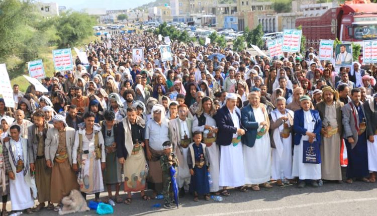 18 مسيرة حاشدة بمحافظة تعز على الثبات والاستمرار في مساندة الشعبين الفلسطيني واللبناني