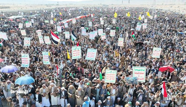 وأشاد المتظاهرون بضربات القوات المسلحة اليمنية التي جرعت الولايات المتحدة وكيان العدو الصهيوني الضربات الموجعة، منوهين بضرب حاملات الطائرات الأمريكية العملاقة في البحار، وضرب عمق كيان العدو الصهيوني.