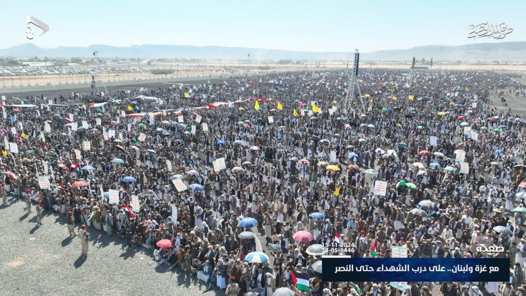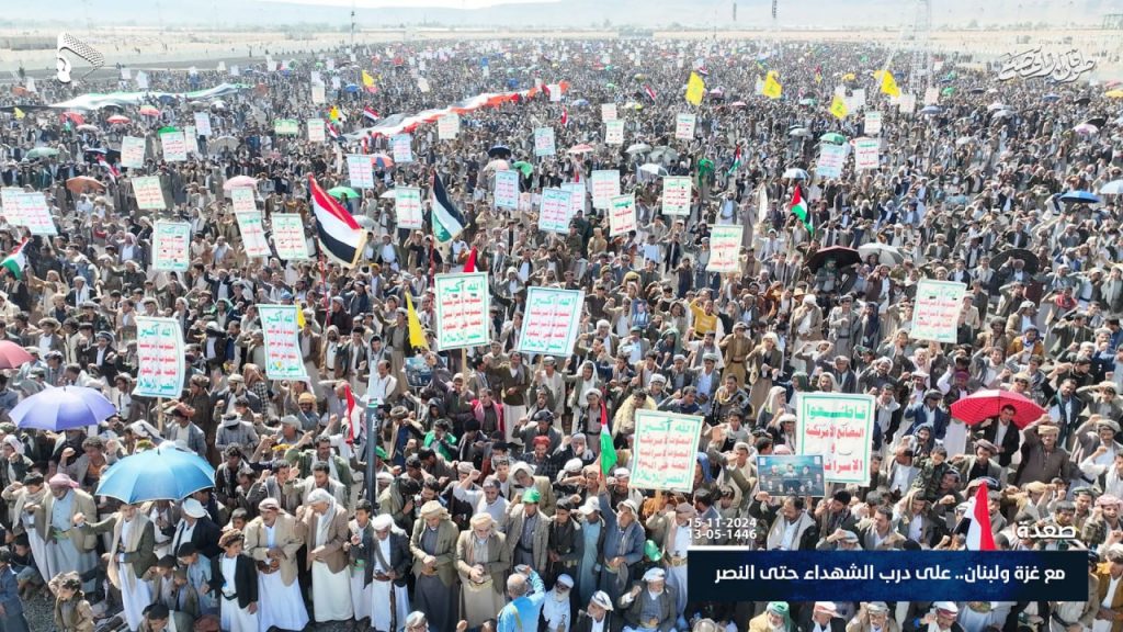 شاهد بالصور.. أبناء صعدة يحتشدون في 29 ساحة تحت شعار “مع غزة ولبنان.. على درب الشهداء حتى النصر”