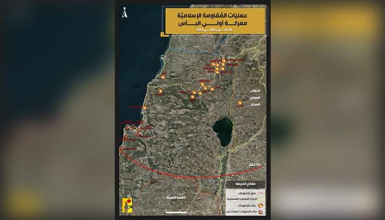 دعمًا للشعب الفلسطيني الصامد في قطاع غزّة وإسنادًا لمقاومته الباسلة ‌‌‏والشريفة، ودفاعًا عن لبنان ‏وشعبه، نفذت المقاومة الإسلامية في لبنان، أمس السبت، عشرات العمليات العسكرية شملت التصدي لمحاولات تقدّم العدو الصهيوني عند الحدود اللبنانية الفلسطينية والتصدي لمسيّرات وطائرات العدو الحربية، وكذلك عمليات استهداف مواقع وقواعد وانتشار جيش العدو الإسرائيلي ومستوطناته في شمال وعمق فلسطين المحتلة: