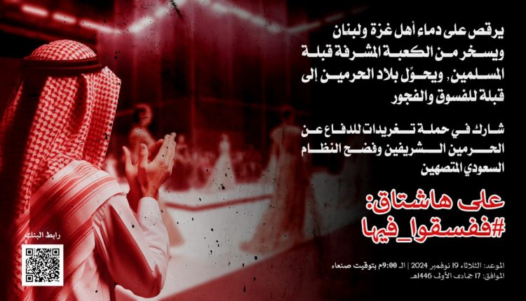 تنطلق تمام التاسعة من مساء اليوم الثلاثاء بتوقيت العاصمة صنعاء, حملة تغريدات واسعة على مواقع التواصل الاجتماعي للدفاع عن الحرمين الشريفين وفضح النظام السعودي المتصهين.