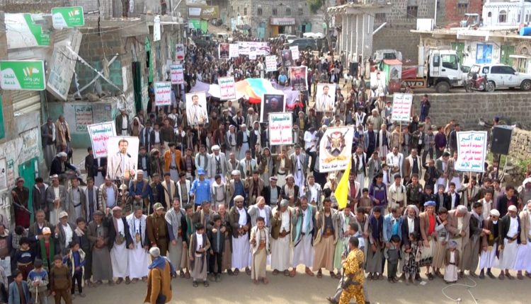 ووجه المحتشدون رسالة للعدوان الأمريكي البريطاني بأن “عدوانكم وتصعيدكم على اليمن لن يثنيه عن موقفه الداعم والمساند لنصرة القضية الفلسطينية حتى إيقاف العدوان عن فلسطين ولبنان وإنهاء الحصار المفروض على غزة”.