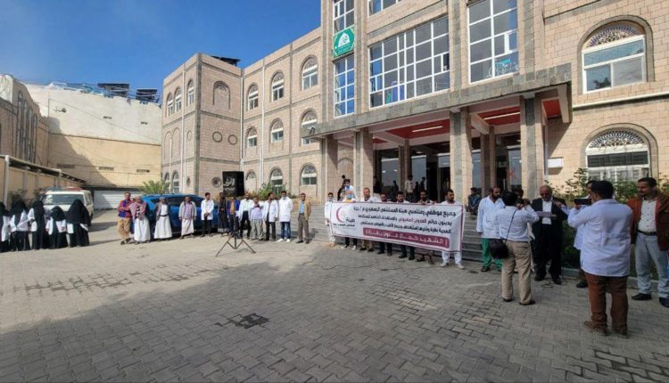 حجة.. وقفة احتجاجية لهيئة المستشفى الجمهوري تنديدًا بجرائم الكيان في غزة