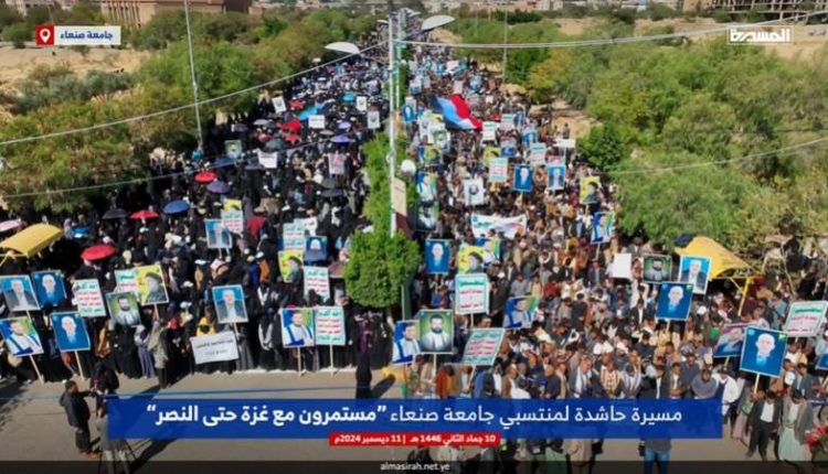 تظاهرة ضخمة تضامناً مع غزة في جامعة صنعاء