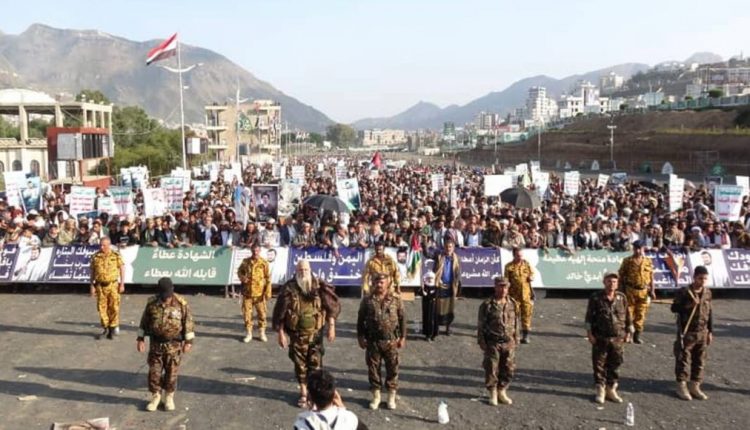 98 مسيرة حاشدة بإب إسناداً للشعب الفلسطيني ومواجهة المشروع الصهيو أمريكي