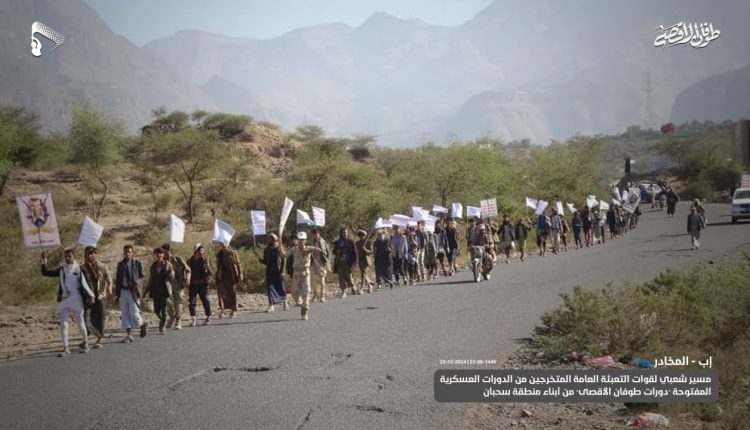 صور | مسير شعبي لقوات التعبئة العامة المتخرجين من الدورات العسكرية المفتوحة “دورات طوفان الأقصى” من أبناء منطقة سحبان بمديرية المخادر في إب 22-06-1446 | 23-12-2024