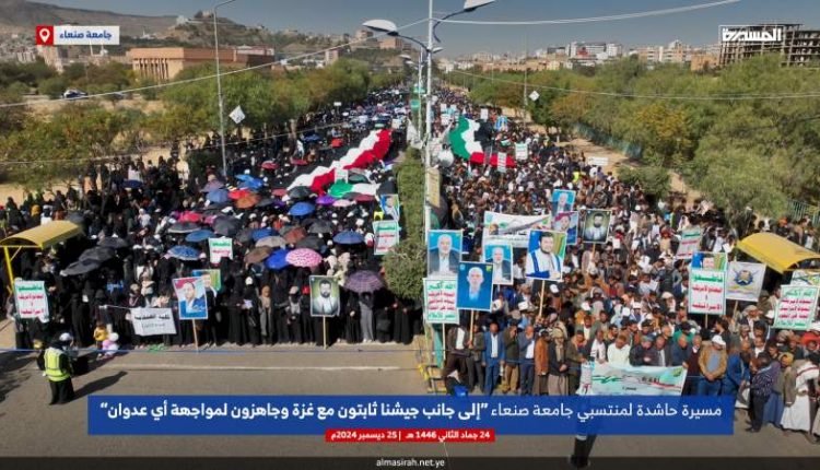 جامعة صنعاء تشهد مسيرة حاشدة بعنوان “ثابتون مع غزة وجاهزون لمواجهة أي عدوان”