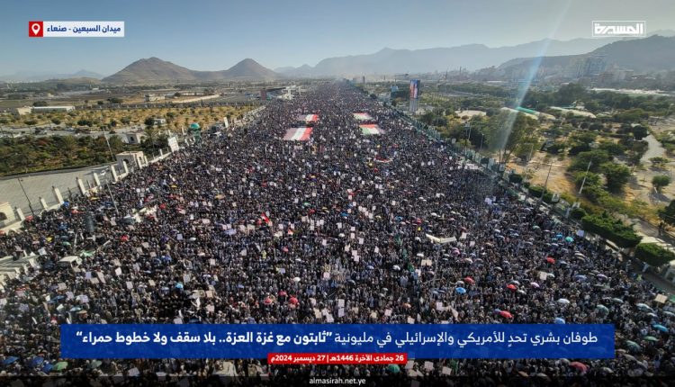 بالصور | طوفان بشري تحدٍ للأمريكي والإسرائيلي في مليونية (ثابتون مع غزة العزة.. بلا سقف ولا خطوط حمراء) بـ ميدان_السبعين في العاصمة صنعاء