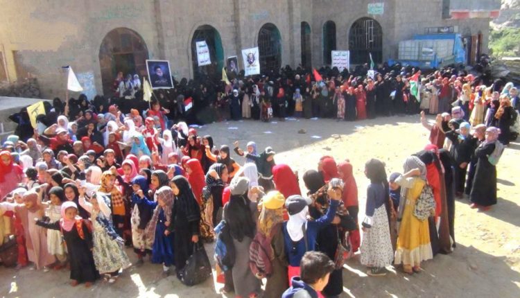 نظمت الهيئة النسائية في مديرية جبل راس بمحافظة الحديدة، اليوم، وقفة لتجديد موقف التضامن مع الشعب الفلسطيني، والتنديد بجرائم الكيان الصهيوني – الأمريكي – البريطاني على اليمن.