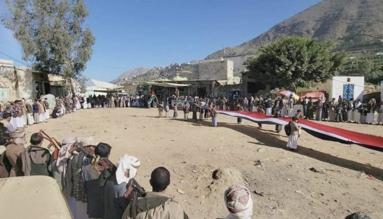 نظم أهالي جمعة بن فاضل والمناطق المجاورة لها في مديرية حيدان بمحافظة صعدة اليوم الاثنين، وقفة قبلية مسلحة إسناداً لغزة وتحديًا للعدو الصهيوني.
