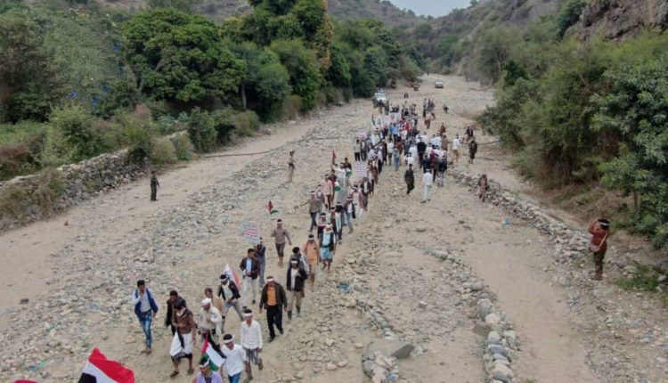 نُظم في مديرية حيفان بمحافظة تعز، اليوم، مسير شعبي وطلابي من خريجي دورات التعبئة العامة “طوفان الأقصى”.