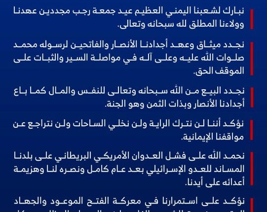 بيان مسيرات (ثابتون مع غزة.. بهويتنا الإيمانيّة ومسيرتنا القرآنية) | 03 رجب 1446هـ 03 يناير 2025م