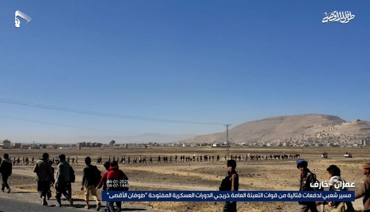 صور | مسير شعبي لدفعات قتالية من قوات التعبئة العامة خريجي الدورات العسكرية المفتوحة “طوفان الأقصى” في مديرية خارف بمحافظة عمران 04-07-1446 | 04-01-2025