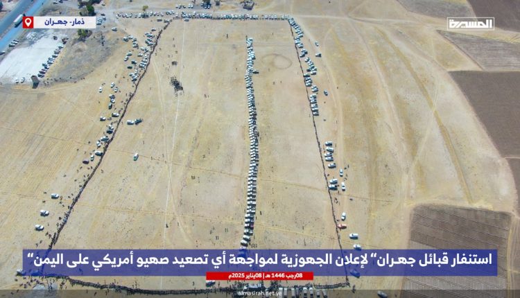 شاهد | استنفار واسع لقبائل مديرية جهران بـ ذمار لإعلان الجهوزية لمواجهة أي تصعيد صهيو أمريكي على اليمن 08-07-1446 | 08-01-2025
