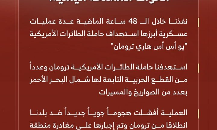 انفوجرافيك ـ بيان القوات المسلحة اليمنية من ميدان_السبعين بشأن استهداف حاملة الطائرات الأمريكية (ترومان) وعدداً من القطعِ الحربية ….