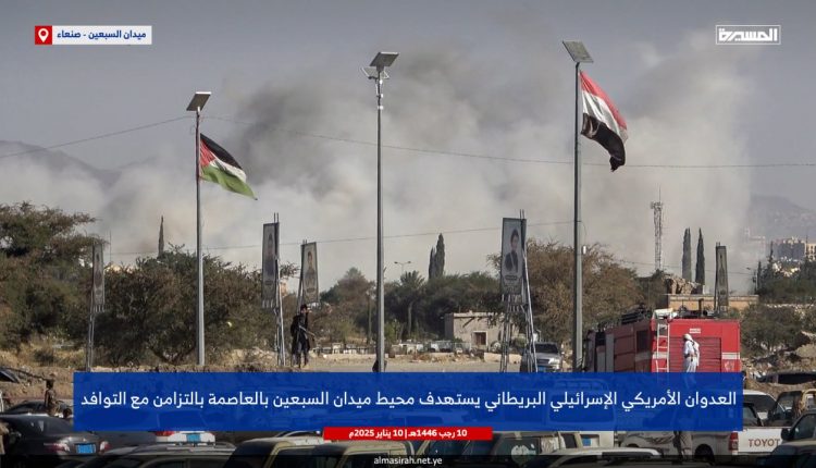 صور لغارات العدوان الأمريكي الإسرائيلي البريطاني الذي استهدف محيط ميدان_السبعين بالعاصمة صنعاء أثناء توافد الحشود إلى مليونية (جهادا في سبيل الله ونصرة لغزة.. سنواجه كل الطواغيت)