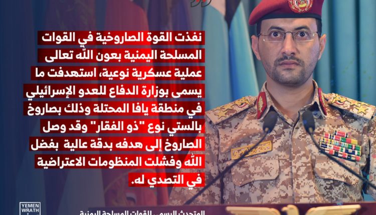 بيان القوات المسلحة اليمنية بشأن استهداف وزارة دفاع العدو الإسرائيلي في منطقة #يافا المحتلة بصاروخ بالستي نوع #ذو_الفقار القوة الصاروخية تدك وزارة الدفاع الإسرائيلية بصاروخ ذو الفقار القوة الصاروخية تدك وزارة الدفاع الإسرائيلية بصاروخ ذو الفقار Last updated يناير 18, 2025 Share يمني برس- انفوجرافيك بيان القوات المسلحة اليمنية بشأن استهداف وزارة دفاع العدو الإسرائيلي في منطقة #يافا المحتلة بصاروخ بالستي نوع #ذو_الفقار Share