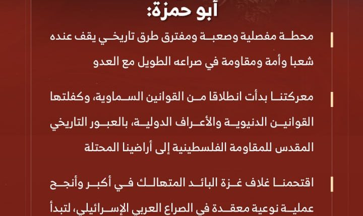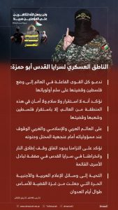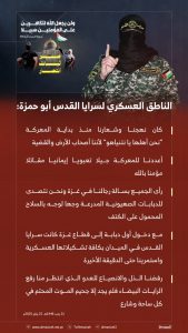 أبرز ما ورد في كلمة الناطق العسكري لسرايا القدس أبو حمزة 21 رجب 1446هـ 21 يناير 2025م أبرز ما ورد في كلمة الناطق العسكري لسرايا القدس أبو حمزة 21 رجب 1446هـ 21 يناير 2025م On يناير 21, 2025 Share Share
