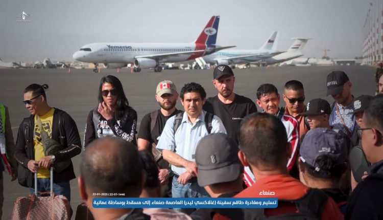 شاهد | تسليم ومغادرة طاقم سفينة “غالاكسي ليدر” العاصمة صنعاء إلى مسقط بوساطة عمانية ومؤتمر صحفي للحكومة اليمنية وممثل حركة حماس في اليمن أثناء عملية التسليم 22-07-1446 | 22-01-2025