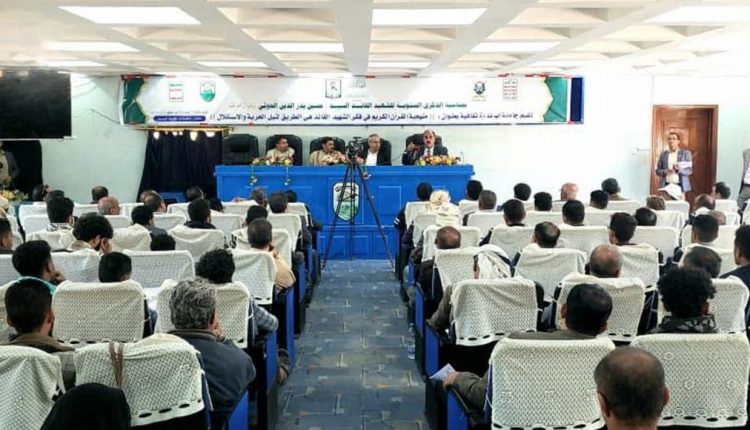 نظمت جامعة إب اليوم الأثنين ، ندوة ثقافية بمناسبة الذكرى السنوية للشهيد القائد بعنوان “منهجية القرآن الكريم في فكر الشهيد القائد السيد حسين بدر الدين الحوثي السبيل الأمثل لنيل الحرية والاستقلال”.