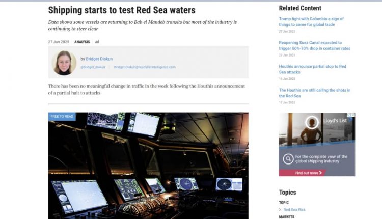 وأشارت “لويدز لست” إلى أن الإعلان اليمني عن الرفع الجزئي للقيود لم يحقق عودة جماعية إلى الممر الملاحي الحيوي، على الرغم من تسجيل عبور 25 سفينة باب المندب للمرة الأولى منذ نهاية عام 2023، أو لأول مرة خلال العامين الماضيين.