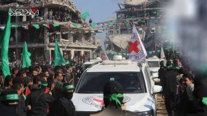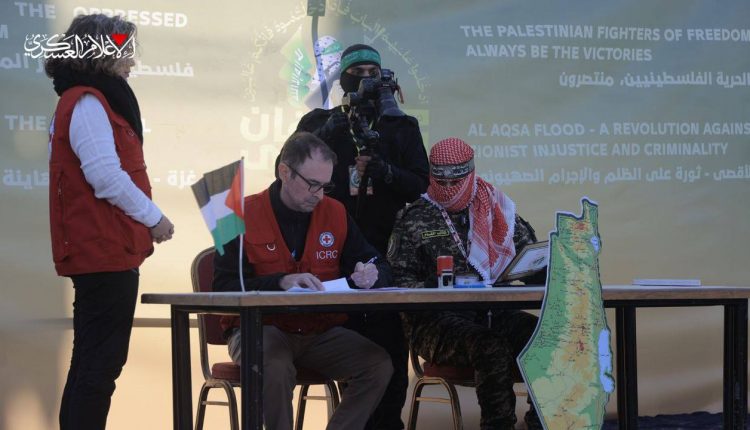 صور | تسليم الجزء الأول من الدفعة الثالثة للأسرى الصهاينة في قطاع غزة ضمن المرحلة الأولى من “صفقة طوفان الأقصى” لتبادل الأسرى