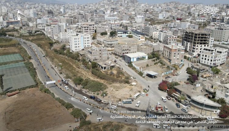 صور | مسير ومناورة عسكرية لقوات التعبئة العامة المتخرجين من الدورات العسكرية “طوفان الأقصى” من عدد من الجامعات والمعاهد الخاصة بمحافظة إب 01-08-1446 | 30-01-2025