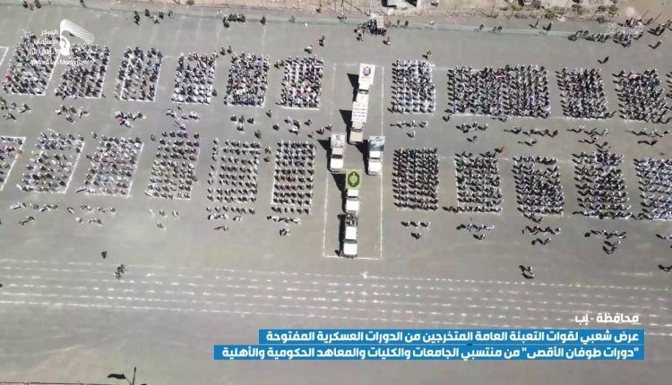 صور | عرض شعبي مهيب لقوات التعبئة العامة المتخرجين من الدورات العسكرية المفتوحة “دورات طوفان الأقصى” من منتسبي الجامعات والكليات والمعاهد الحكومية والأهلية بمحافظة إب 06-08-1446 | 04-02-2025