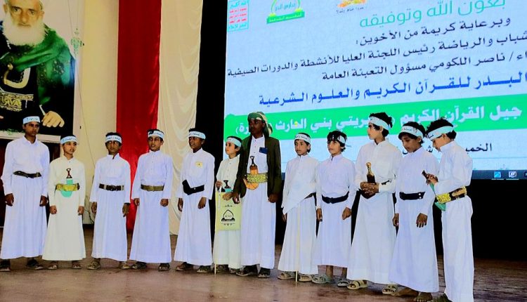 نظَّمت مدارس البدر للقرآن الكريم والعلوم الشرعية بأمانة العاصمة اليوم الخميس، الحفل التكريمي لعدد (1300) طالبٍ، من طلاب مدارس جيل القرآن بمديريتي بني الحارث والثورة لعام 1446هـ.