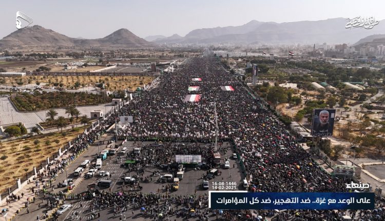 العاصمة صنعاء تشهد حشود مليونية رفضاً لأي تهجير أو عدوان على الشعب الفلسطيني