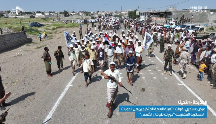 شاهد | عرض عسكري لقوات التعبئة العامة المتخرجين من الدورات العسكرية المفتوحة “دورات طوفان الأقصى” من أبناء مديرية التحيتا في الحديدة 18-08-1446 | 16-02-2025