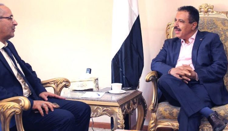 التقى وزير الخارجية والمغتربين جمال عامر، اليوم الثلاثاء ، رئيس بعثة جمعية الهلال الأحمر القطري في اليمن، أحمد الشراجي.