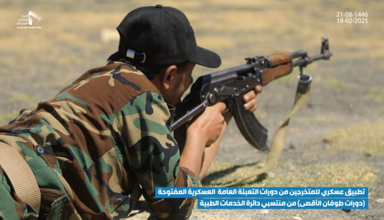 صور | تطبيق عسكري للمتخرجين من دورات التعبئة العامة العسكرية المفتوحة “دورات طوفان الأقصى” من منتسبي دائرة الخدمات الطبية – صنعاء 21-08-1446 | 19-02-2025