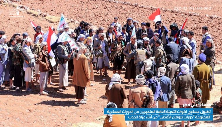 شاهد | تطبيق عسكري لقوات التعبئة العامة المتخرجين من الدورات العسكرية المفتوحة “دورات طوفان الأقصى” من أبناء عزلة الحدب بمديرية بني_مطر – صنعاء 21-08-1446 | 19-02-2025