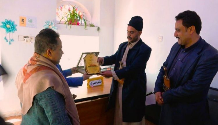 كرم مركز الأسر المنتجة بمديرية الجبين بمحافظة ريمة محافظ المحافظة فارس مجاهد الحباري بدرع البناء والتنمية وذلك لجهود المبذولة في تشجيع المرأة من ذوي الإعاقة والدخل المحدود وتمكينها من العمل .