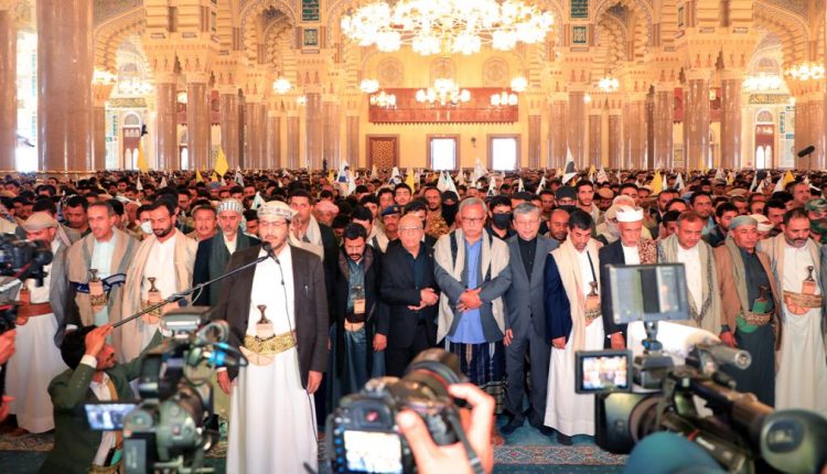 اليمنيون يؤدون صلاة الغائب على روحي شهيدي الأمة والإنسانية نصر الله وصفي الدين