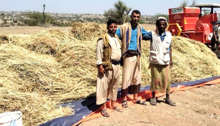دشنت جمعية خدير التعاونية الزراعية متعددة الأغراض بمحافظة تعز اليوم، حصاد محصول القمح في عزل البدو بمديرية خدير.