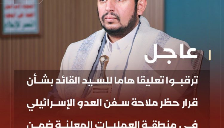 انفوجرافيك ـ ترقبوا تعليقا هاما للسيد القائد بشأن قرار حظر ملاحة سفن العدو الإسرائيلي في منطقة العمليات المعلنة ضمن نشرة الأخبار الرئيسية 08:30 مساء
