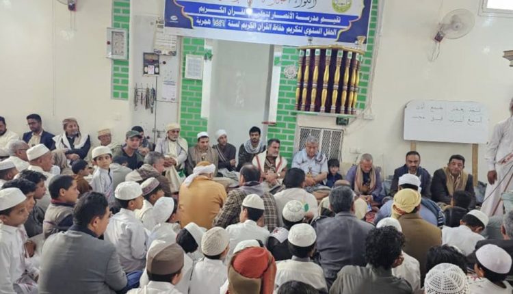 وفي الحفل الذي حضره مدير مدينة البيضاء أحمد الرصاص نوه الناشط الثقافي حسام القطابري بجهود القائمين على الحلقات النموذجية للقرآن الكريم وتكريم حفظة كتاب الله .. داعيا إياهم إلى تطبيق تعاليم القرآن سلوكًا في حياتهم.