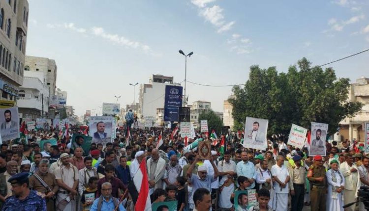 وانطلقت المسيرة المركزية من شارع الميناء في مركز المحافظة، بحضور محافظ الحديدة عبدالله عبده عطيفي، ووكيل أول المحافظة أحمد مهدي البشري، إلى جانب عدد من وكلاء المحافظة، فيما توزعت المسيرات الأخرى على مختلف المديريات والقرى والعزل بالمحافظة.