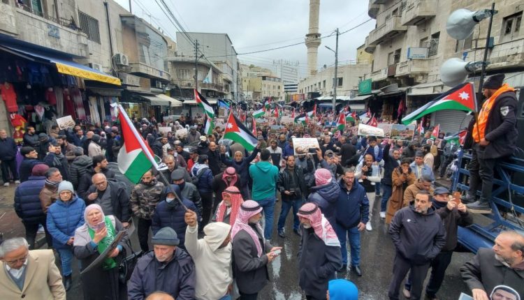 وفي خطوة لاستئناف الحراك الرافض للعدوان الإسرائيلي والداعم للشعب الفلسطيني، دعت “الحركة الإسلامية” في الأردن و”الملتقى الوطني لدعم المقاومة” لمسيرة شعبية حاشدة ظهر اليوم الجمعة، انطلقت من أمام المسجد الحسيني الكبير وسط العاصمة عمّان، وكذلك في المفرق والزرقاء وإربد.