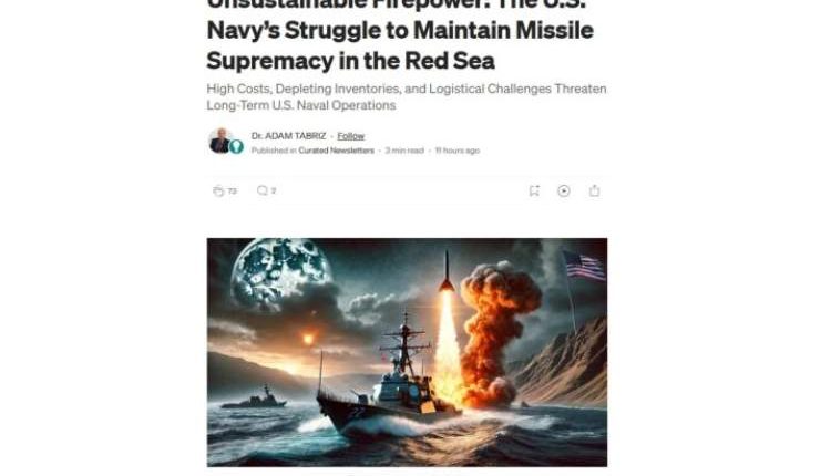 كشف تقرير حديث نشره موقع Medium للكاتب والخبير العسكري الدكتور آدم تبريز، عن أزمة عميقة تواجهها البحرية الأمريكية في البحر الأحمر، حيث تتعرض أنظمة الدفاع الصاروخي لاستنزاف غير مسبوق بسبب عمليات المواجهة المستمرة مع القوات اليمنية، مما يهدد استدامة التفوق العسكري الأمريكي في المنطقة.