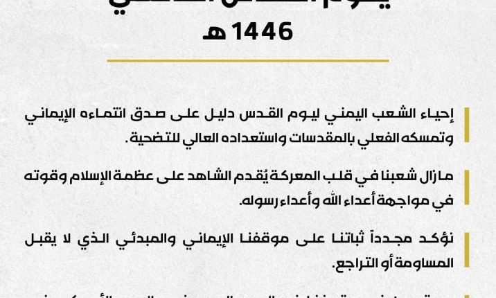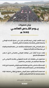 انفوجرافيك ـ بيان مسيرات يوم القدس العالمي 1446هـ انفوجرافيك ـ بيان مسيرات يوم القدس العالمي 1446هـ On مارس 28, 2025 Share Share